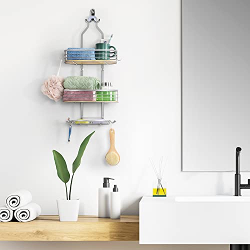 ETELI - ETELI Shower Organizer Hanging Shower Caddy 3 Tier Over Shower Head Caddy Bathroom with Soap Holder and Hooks for Shampoo Conditioner Bath Sponge, Silver