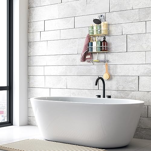- 【Removable & Detachable Design】Removable Caddy Baskets Design provides you with convenience and you can take down and hang on shower organizer over shower head at any time. 2 movable metal hooks for hanging razors, towels, shower sponge, washcloth and more. Hollow design of shower racks for inside shower hanging allows items to dry more efficiently after using.