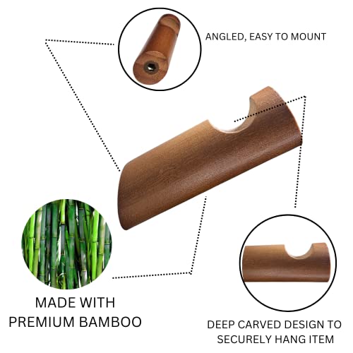 Eternal Nature - خطافات حائط من خشب الخيزران اتيرنال نيتشر - ريفية مصنوعة يدويا للتعليق - خشبية شديدة التحمل - مجموعة مزخرفة لتعليق المعاطف والقبعات والشنط وشنطة الظهر - 6 قطع بني 25.0 رطل 25.0 .