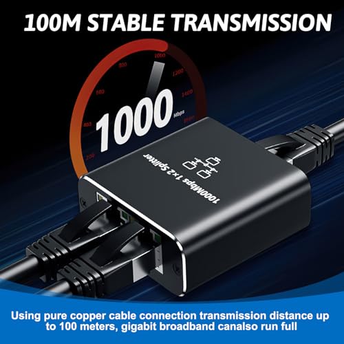 - 【High-Speed Connectivity】Experience seamless gigabit Ethernet connections (1000M) with our 2-port ethernet switch. When paired with CAT6 cables, cat splitter guarantees swift and stable data transfers. Be it large file transfers, streaming, or online gaming, expect top-tier performance. Please note, when both computers are connected, they will share the 1000M bandwidth, offering up to 1000M per device.