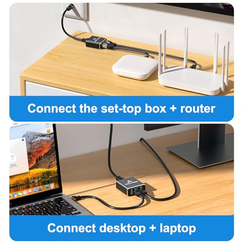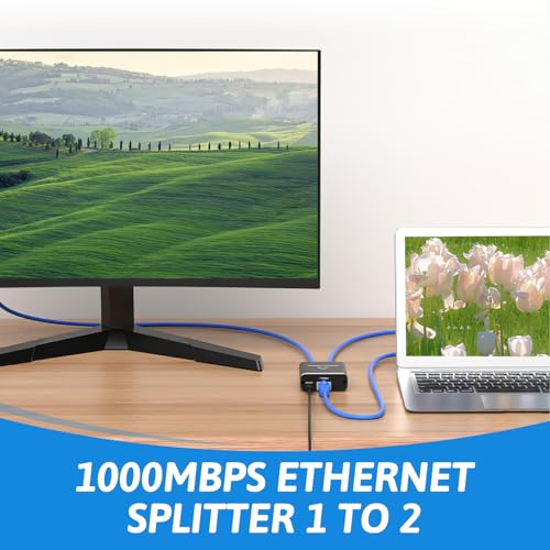 - 【Ethernet Splitter 1 to 2】With this 1-to-2 network switch, you can effortlessly connect two computers using just one network cable. This network cable splitter 2 port eliminates the hassle of constantly switching cables and ensures both devices enjoy uninterrupted internet access. For optimal performance, it's recommended to use CAT6 or superior-grade cables.