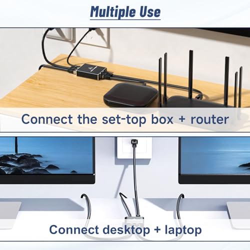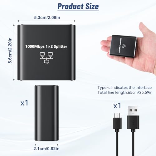 - Packaging Content: You will receive a ethernet splitter 1 to 2, the 65cm long Type-C power cable and the user manual, which allows two computers to connect to the Internet at the same time using a single cable, eliminating the need to change cables frequently.