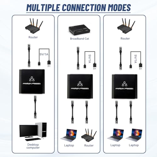 - Product Design: The RJ45 LAN internet splitter's compact and portable design makes it easy to install and use, and its plug-and-play functionality requires no configuration, making it a convenient solution for instant Internet access for multiple devices.