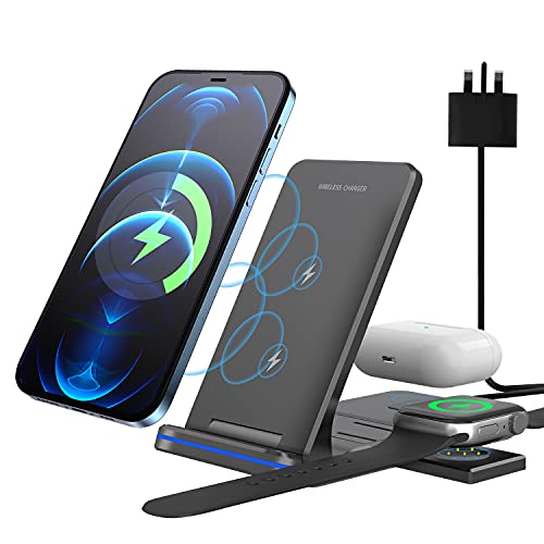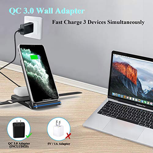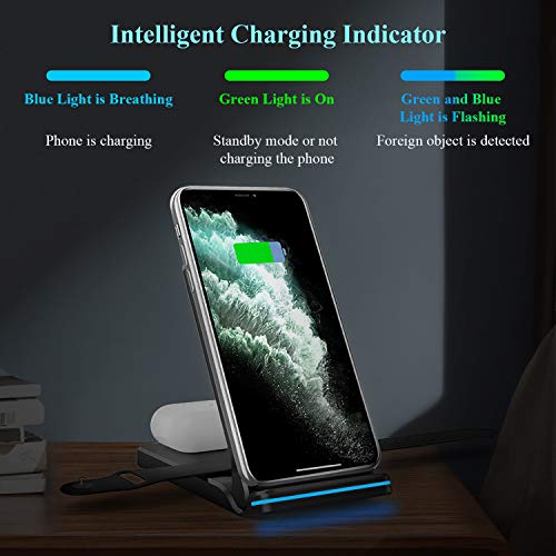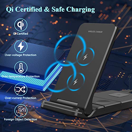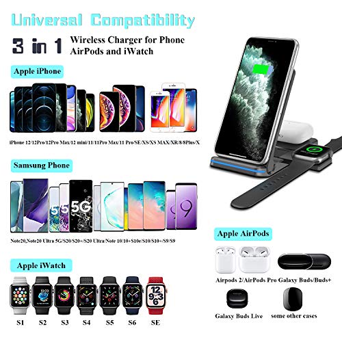 ETROBOT - شاحن لاسلكي سريع 15 واط حامل 3 في 1 وقاعدة شحن مغناطيسية معتمدة من كيو اي متوافقة مع ايفون 12/11/اكس/اكس اس ماكس/8 بلس، سامسونج، ساعة ابل، ايربودز.