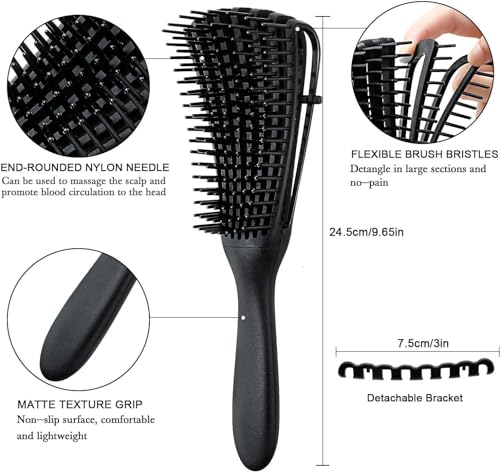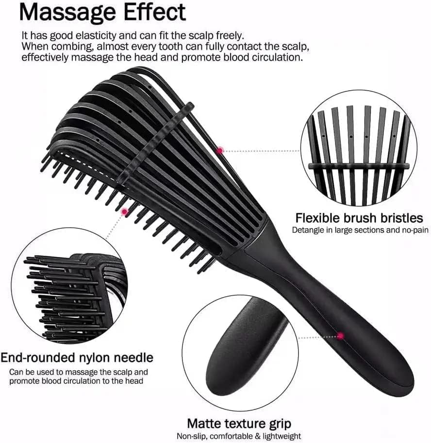- [طريقة سريعة وبدون ألم] : صُممت فرشاة فك تشابك الشعر الخاصة بنا ببراعة لتقليل الألم وحماية الشعر من الأطراف المتقصفة والتكسر. مشط للشعر المجعد يمكنه بسهولة فك تشابك الشعر المموج والملتف والكثيف والطبيعي دون تلف. اشعر بألم أقل على فروة الرأس، ويوفر المزيد من الوقت