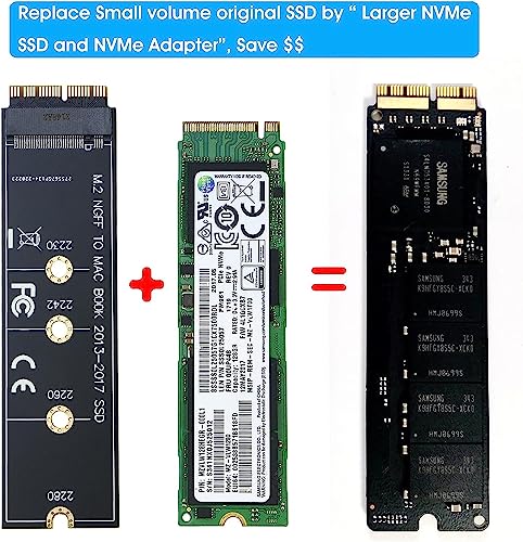 ETZIN - محول ترقية الذاكرة المستديمة M.2 لقرص الـ اس اس دي بـ 12+16 دبوس لجهاز ماك بوك اير (موديل 2013-2017) A1465 A1466 وماك برو (أواخر 2013-2015) (EPL-404HS - عبوة من 5 قطع)