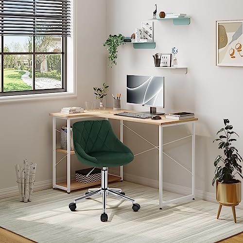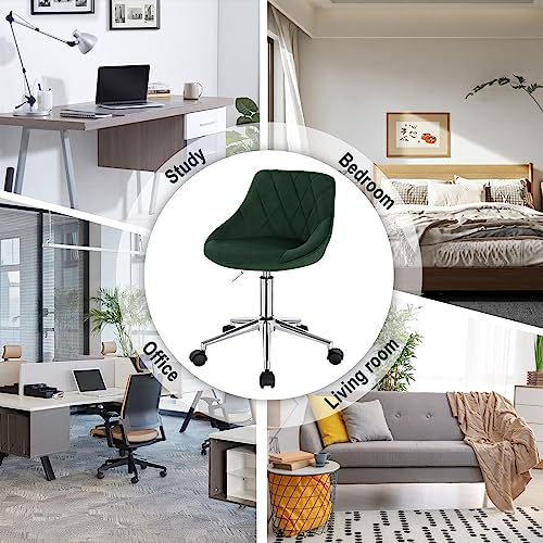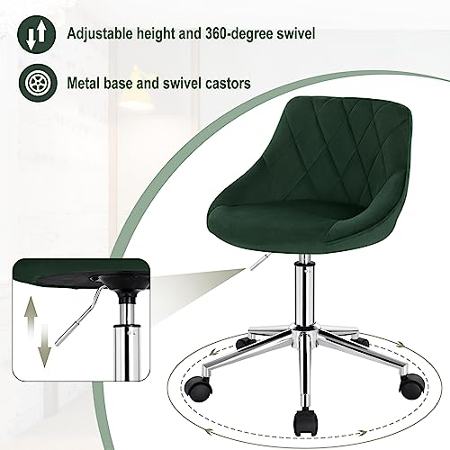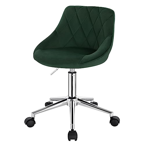 EUGAD - EUGAD 0169BGY Modern Swivel Office Desk Chair with Wheels – Adjustable Stool in Quilted Velvet for Bedroom – Dark Green
