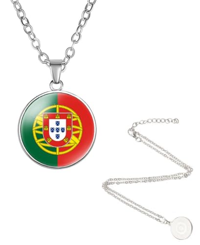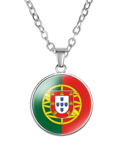 EUIOSFDC - Portugal Country Flag Necklace Alloy Necklace for Men Women