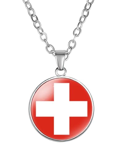 EUIOSFDC - عقد من خليط معدني بتصميم علم دولة سويسرا للرجال والنساء من اي يو اي او اس اف دي سي