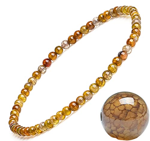 EUMENIDES - EUMENIDES Men's and Women's Stone Anklet,Tiger's Eye Tourmaline Stone Color Stone Agate Stone Anklet,4/6MM,9.45 Inch, Class A,Release Anxiety, Bring Good Luck, (Brown Dragon Pattern Agate Anklet,6MM)