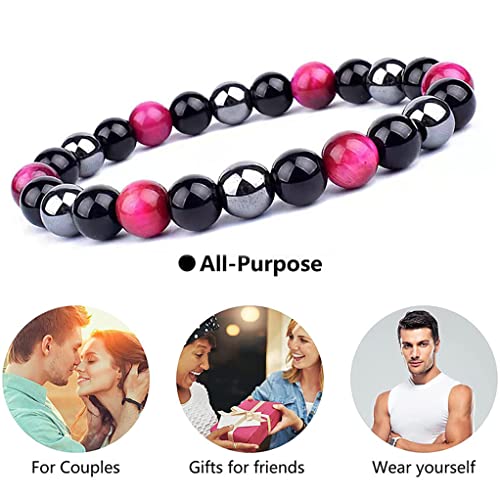 Grade A, Rose Red Tiger Eye Obsidian Magnet Bracelets,6MM(7.5")