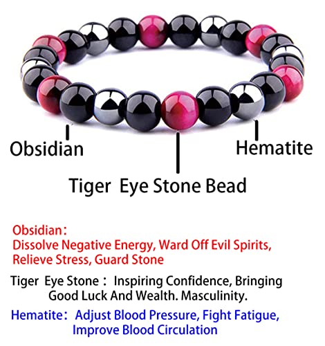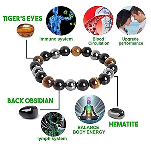 EUMENIDES - EUMENIDES Tiger's Eye Bracelets,CLASS A QUALITY,Tiger's Eye And Obsidian Magnet Bracelets, Cat'S Eye Bracelets,Sunshine, Self-Confidence, Release Anxiety, Stone