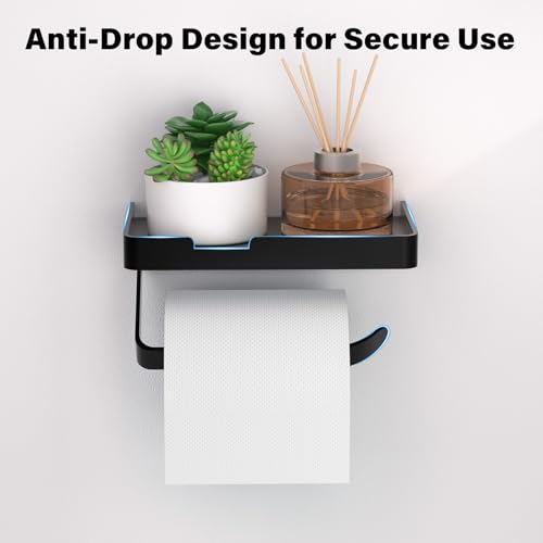 Euqvunn - حامل ورق تواليت مع رف من يوكوفون، حامل ورق تواليت من خليط معدني من الألومنيوم، يثبت على الحائط وذاتي اللصق ومسمار، ملحقات مطبخ الحمام، أسود غير لامع