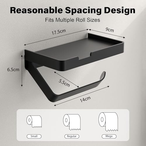 - قياسات مثالية للاستخدام العملي - يبلغ قياس رف حامل ورق التواليت 17 سم (طول) × 8.5 سم (عرض)، بينما يبلغ طول حامل الورق نفسه 14 سم، مما يوفر مساحة كافية لمعظم لفافات ورق التواليت القياسية والأشياء الصغيرة الأساسية.