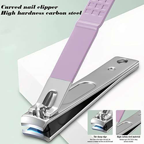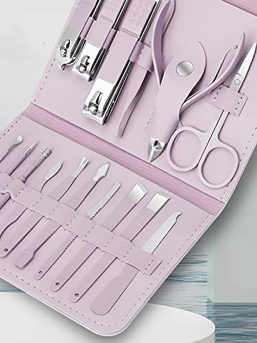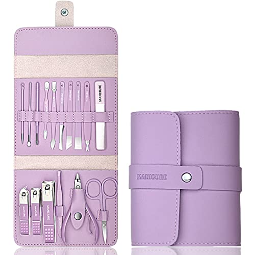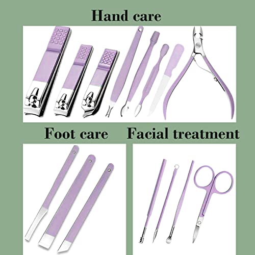 EUWBSSR - Manicure Set Professional Nail Clippers Pedicure Kit, 16 pcs Stainless Steel Nail Care Tools Grooming Kit with Luxurious Travel Leather Case for Thick Nails Men Women Gift (Purple)