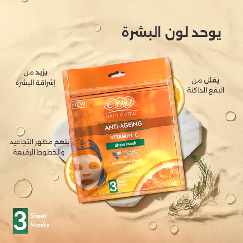 Eva - Eva Skin Clinic Vitamin C Sheet Mask for Brightening Hydration and Radiant Skin Face Mask 3 Sheets 42 g