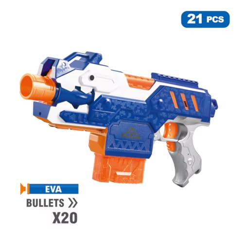 Generic - EVA X20 Automatic Gun 21 Pieces with EVA Ammo Blue and Orange Foam Bullets for Kids Designed to Simulate Shooting Experience in a Safe and Fun Way