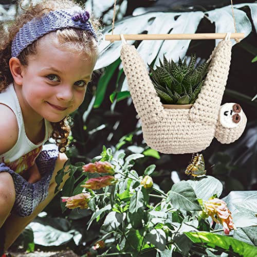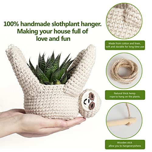 Evbopa - شماعة نباتات الكسلان بتصميم حيوان الكسلان لأصيص النباتات العصارية المعلقة لمحبي النباتات وديكور المنزل، شماعة نباتات من المكرمية، حامل نباتات 5 بوصات من ايفبوبا