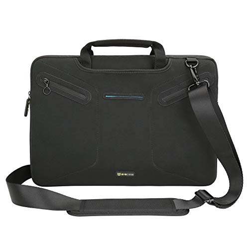 EveCase - Laptop Messenger Neoprene Case with Handle And Carrying Strap (Black, 12.5 to 13.3in)