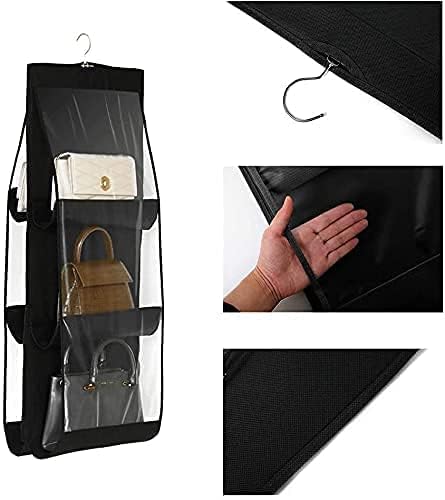 - <p>This hanging handbag organizer can hold 6 Bags Can be hooked in your wardrobe or hanging behind the door</p>