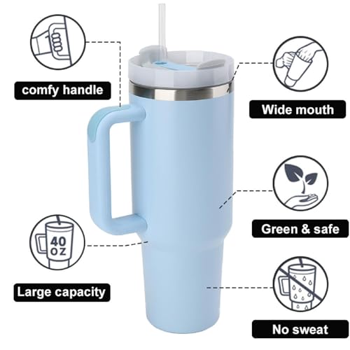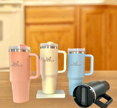 EVERSIP - كوب معزول بتقنية التفريغ الهوائي من ايفرسيب، كوب من الفولاذ المقاوم للصدأ سعة 1.200 لتر مع مقبض وشفاطة، كوب سفر للقهوة والشاي والماء (لون أزرق سماوي)