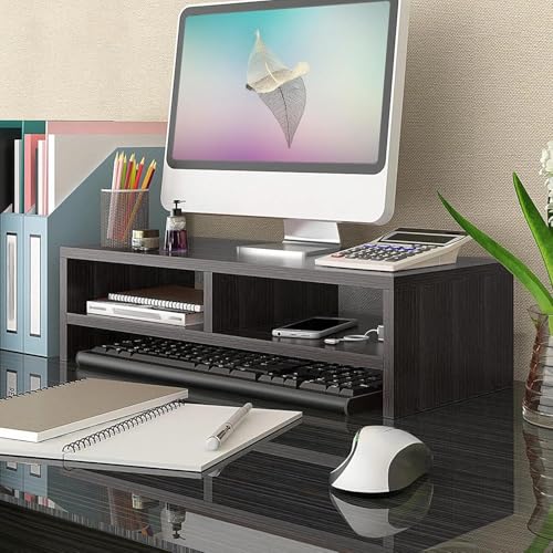 - ✅MONITOR RISER STAND WITH STORAGE ORGANIZER : Our monitor stand rise have storage space too which frees your hands to make work easier. The monitor shelf provides enough area for storing laptops, keyboards, wireless mice, and daily necessities to keep your desktop tidy.