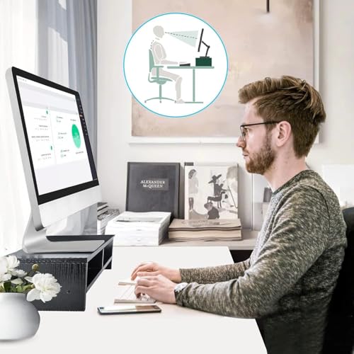 - ✅DESIGNED: when you put your computer on your desk, the display will be about 150 mm higher. This allows you to adjust the viewing line of your computer. Reduces eye fatigue, back, and cervical spine fatigue, and improves work efficiency