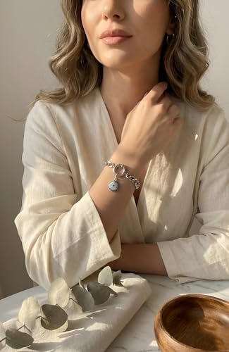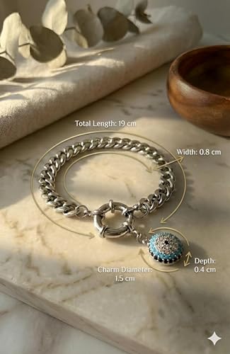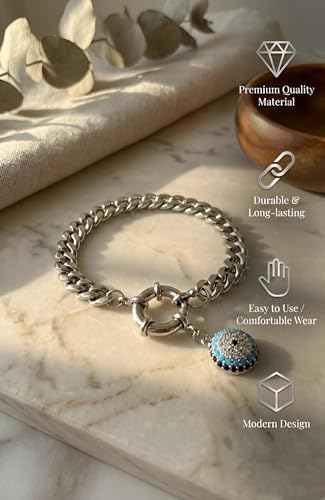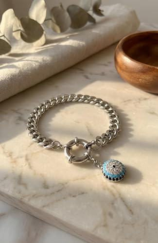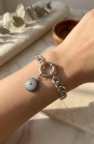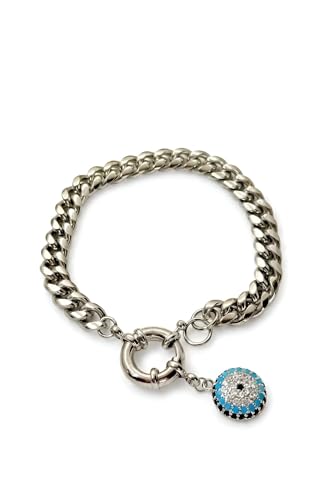 Generic - سوار سلسلة بتصميم العين الزرقاء (ذهبي - فضي) - قضيب كوبي من الفولاذ المقاوم للصدأ مع تعليقة من كريستال اللازورد ومشبك تمرير أنيق للحماية والأناقة