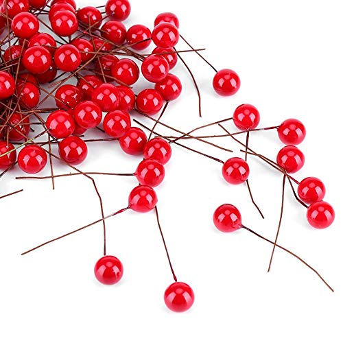Evisha - توت صناعي من 100 قطعة فاكهة التوت الاحمر لتزيين شجرة الكريسماس والفنون والحرف اليدوية وتزيين اكليل