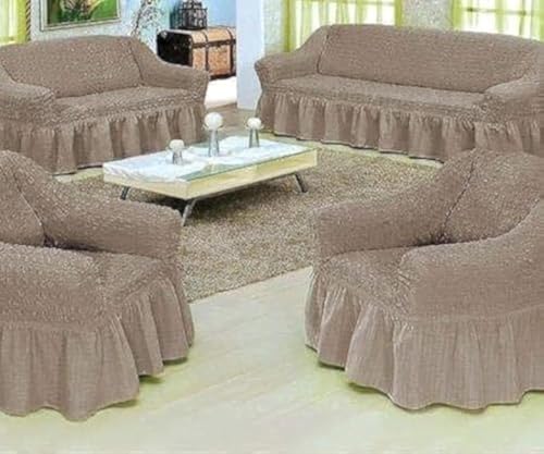 EVORY HOME - طقم اغطية كنبة تركي مرن - بيج، لوحة قماشية
