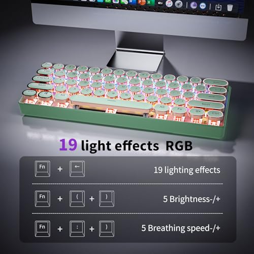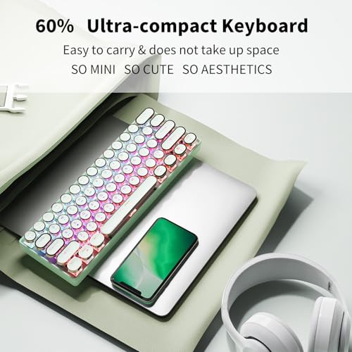 SEUNKWANG - EWEADN G61 Typewriter Keyboard Wireless Mechanical Keyboards, 60% Mini Typewriter Keyboard with Rainbow Backlit, Anti-Ghosting, Red Switch Bluetooth/2.4GHz/USB-C Cute Aesthetic Keyboards-Green