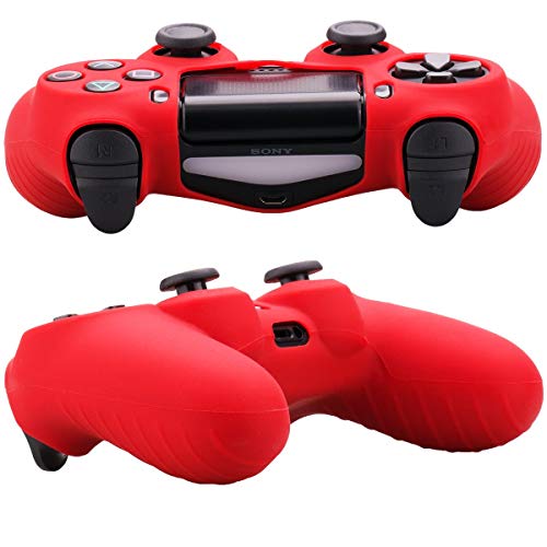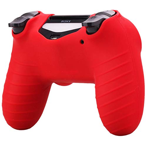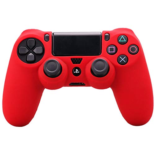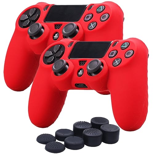 eWINNER - حافظة حماية من السيليكون المرن من اي وينر، أغطية عصا الإبهام متوافق مع أجهزة تحكم سوني بلاي ستيشن 4 دوال شوك (2 جراب + 8 أزرار إبهام، لون أحمر)