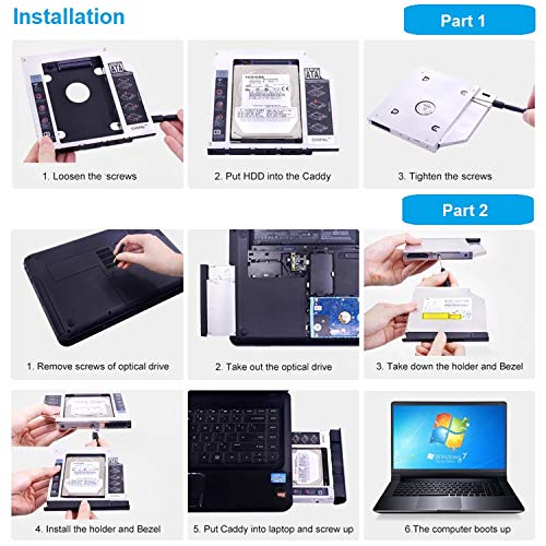 - 【التوصيل والتشغيل】 اتصال سريع وموثوق تمامًا كما في هارد HDD الأساسي. مدمج بالكامل في اللاب توب بلا حاجة إلى كابلات / وحدة إمداد الطاقة / برنامج تعريف. تشغيل مزدوج، يدعم تثبيت نظام التشغيل الثاني على هارد HDD الثاني واختيار بدء التشغيل.
