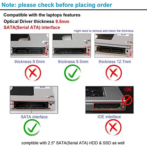- 【علبة هارد HDD】توفر لك علبة الهارد درايف الثاني/المحول أقصى مرونة لتخزين البيانات، مع تصميم محمول صغير الحجم. يمكن أن يعمل مع محرك الأقراص الصلبة التسلسلي ATA مقاس 2.5 بوصة 9.5 مم وهارد SSD وهارد HDD أيضاً. مع هارد HDD ثاني في اللاب توب، يمكنك تسريع عمل النسخ الاحتياطية للتطبيقات المهمة والبيانات المهمة. ببساطة قم بإزالة محرك CD-ROM ووضع العلبة (مع القرص الهارد المضاف) في مكانه. سهلة التشغيل ومريحة في الاستخدام.