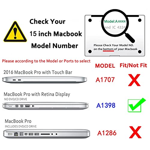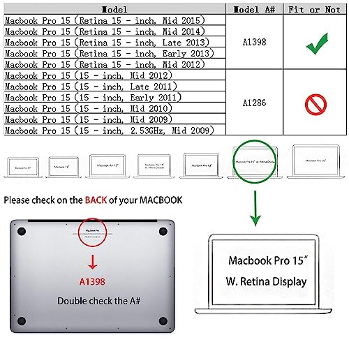 - 💻IMPORTANT: This case only fits with Apple Macbook Pro 15 Inch (Model: A1398) Please check the bottom of your macbook to find exact model name "A1xxx" of your macbook before purchasing to ensure the case will fit your laptop.