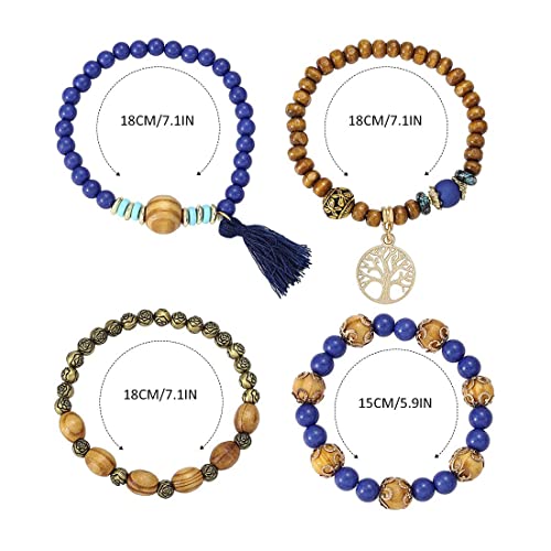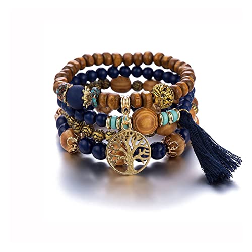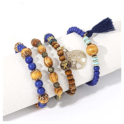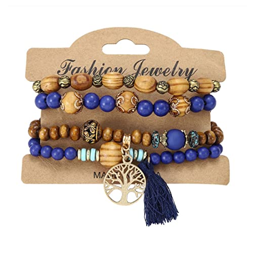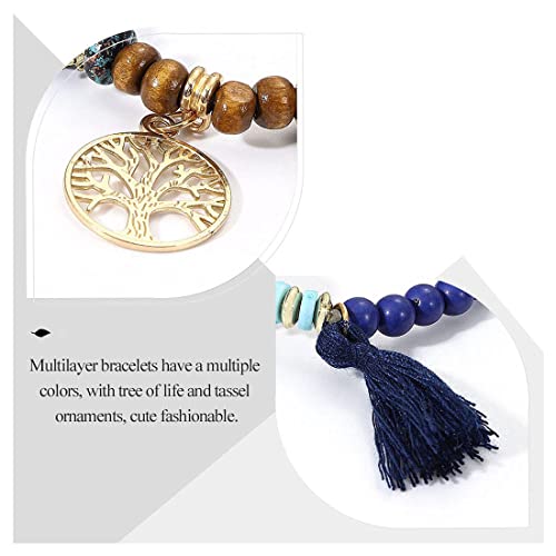 Excefore - أساور بوهو مجموعة خرز خشبية حلقية على شكل شجرة الحياة متعددة الطبقات قابلة للتمدد هدايا للنساء والفتيات المراهقات والزوجة والأخت
