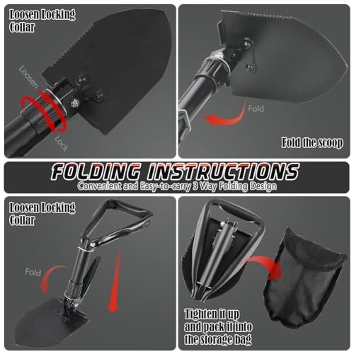 - Versatile Design for Outdoor Adventures: Our Camping Shovel is expertly crafted for a variety of outdoor activities. With a length of 18.5 inches and a compact foldable size of just 7.5 inches, it’s Ideal for camping, gardening, and emergency situations.