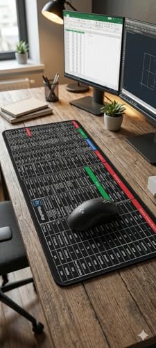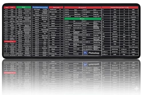 Generic - Excel and Photoshop AutoCAD Shortcut Mouse Pad - Extended Large Gaming XXL 90x40cm Keyboard and Spreadsheet for Desktop Computer | Stitched Edge Non-Slip Gaming Pad