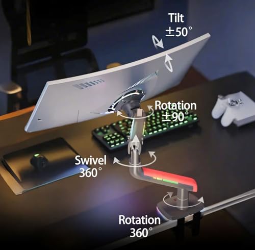 - ☀ FULLY ADJUSTABLE: The bracket arm features a durable gas spring system that provides smooth movement and accurate positioning for your screen. Height, spin, and tilt are completely easy to get the perfect viewing angle. The mount supports a double-clip C or Grommet, ensuring exceptional stability and a comfortable user experience.