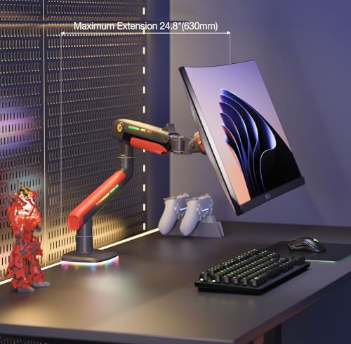 MAJESTY - Exclusive Gaming Monitor Stand by NB Ergonomic Professional - 360° Swivel Design with Gas Spring Arm and Built-in RGB Lighting Supports 32-60 Inch (2-20K) PC Screens for Gaming Enthusiasts L50