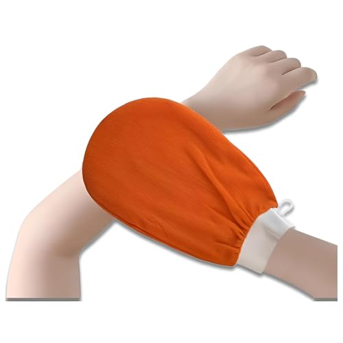 - EASY TO USE:Wet your skin and gloves with warm water, apply soap or lotion to your skin, rub your body up and down. Light your skin by taking a shower or staying under an ultra-warm shower for at least 5 minutes. You will achieve the best results by using the exfoliating mitt after a sauna or Turkish bath.