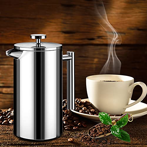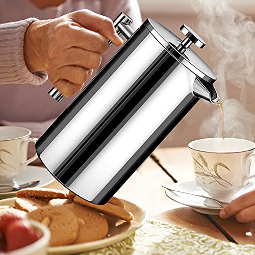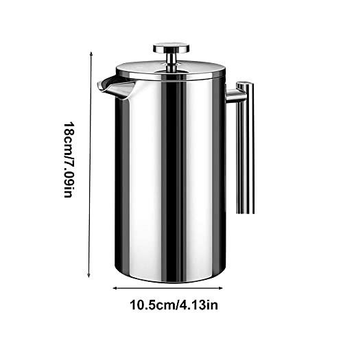 - This stainless steel French press is made of 304 stainless steel, which is durable and elegant. This coffee press is vacuum coated and has a double-walled construction that keeps your coffee hot for longer.