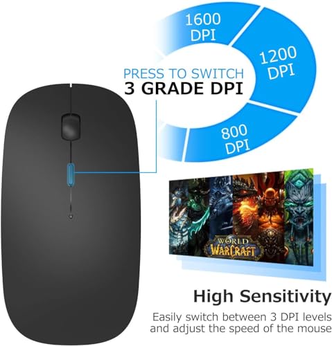 - You could switch the mode between two devices by just one click. Note: You can't use Bluetooth mode and 2.7GHz at the same time. 🎁Silent Click and Adjustable DPI: Special soundless design for the right and left buttons, make you concentrate on working or playing games without disturbing others.Switch DPI levels among 800, 1200 and 1603 to to meet your needs with high precision. Advanced Optical Tracking Technology ensures greater sensitivity for precise tracking on a wide range of surfaces.