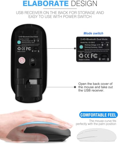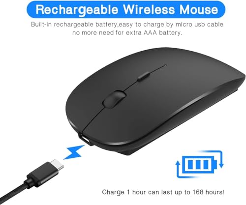 Exon - Exon X1003 Bluetooth Wireless Mouse, Dual Mode Slim Rechargeable, Silent, Cordless, 2.4G & Bluetooth 4.0, Compatible with Laptop, PC, Windows, Mac, Android OS Tablet, Black