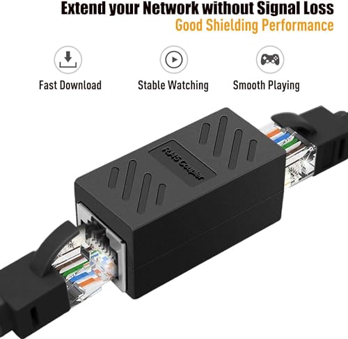 - RELIABILITY AND DURABILITY: The coupler are full copper conductor and gold plated to ensure no loss or delay of signal integrity. HIGH SPEED: The ethernet female to female coupler can transmit up to 10Gbps and can connect Cat 7 Cat 6 Cat 5e Cat 5 Ethernet cables. WIDE RANGE OF USES: The rj45 ethernet extension connector are small, easily fitting into your palm. It provides multiple solutions for home networking, office, audio, video, surveillance, engineering etc.