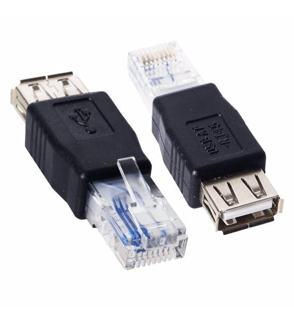 - USB Type A to RJ45 Ethernet Adapter F/M. With this adapater you can now connect a USB ADSL modem to a router with an RJ45 socket. Easily connect and transfer data between networks with this USB female to RJ45 male Ethernet adapter. Connectors: USB (Female), RJ 45 (Male).