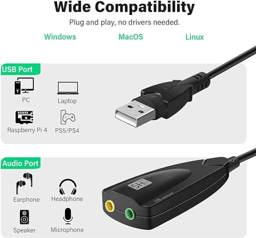 - 5HV2 USB 7.1 Channel Professional External Sound Card Set; No driver required. For instant palyback only; It is a highly flexible interface that can be used with the portable system. It can protect to avoid electromagnetic interference and enjoy stable and better sound quality. Compatible with Win7,Win8,WinXp or high systems;