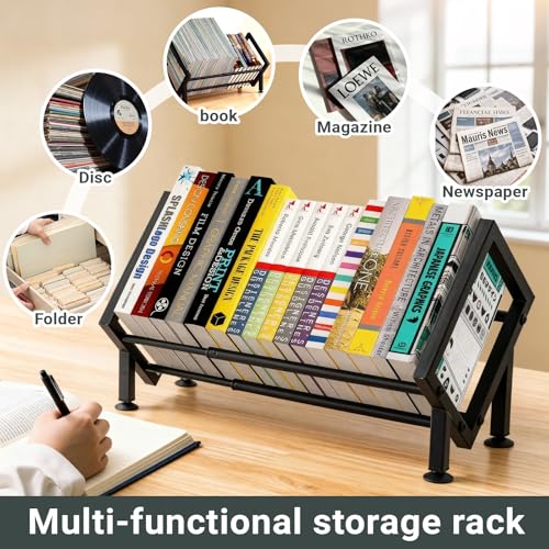 - Ideal Gift: This unique desk shelf can be used for both book display and vinyl record display, the bookshelf's large storage space can hold a variety of books and records. Whether it's a birthday, Christmas or Thanksgiving, our desktop bookshelf makes a beautiful and practical gift