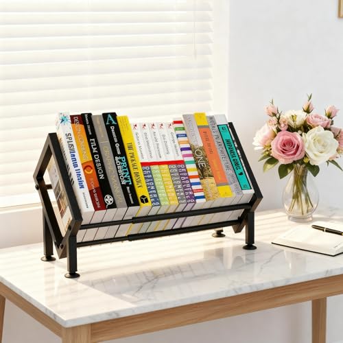 - Easy to Assemble and Move: The tabletop bookshelf is easy to assemble and you can have a practical small desk top bookshelf in just five minutes. The bookshelf structure is lightweight and stable, so you can always move it around to find the perfect place for books and other items