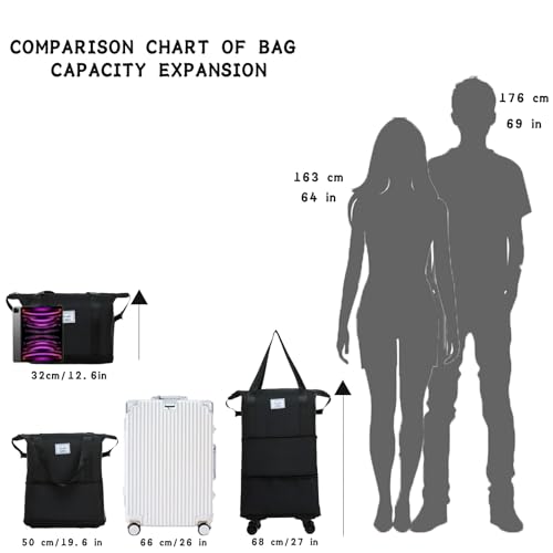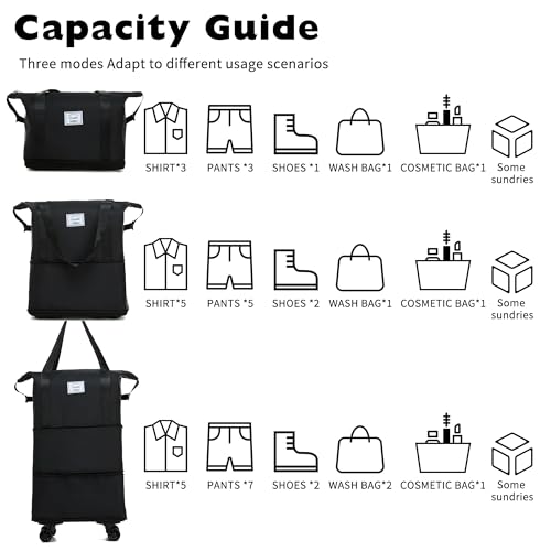 Generic - شنطة سفر قابلة للطي والتوسيع مع عجلات دوارة قابلة للفصل لرحلات العمل، شنطة تخزين محمولة متينة للغاية - بسيطة - قطعة واحدة - اسود